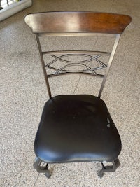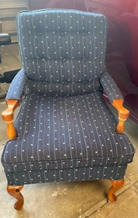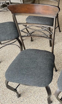 These kitchen chairs had worn black seats reupholstered with a jazzy striped performance fabric to look new.
